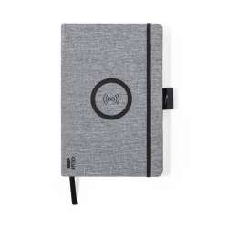 Anteckningsblock med laddare, utformat för att kombinera praktisk funktionalitet och innovation. Detta A5-format anteckningsblock är tillverkat av 300D RPET-polyester, vilket säkerställer hållbarhet och stil.