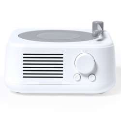 Upptäck vår Bluetooth®-högtalare med retrodesign, inspirerad av skivspelare. Kompakt och kraftfull med sina 5W, passar den enkelt in i alla utrymmen.