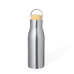 Dess skruvkork i rostfritt stål är prydd med detaljer i bambu och har ett integrerat handtag för enkel transport.
