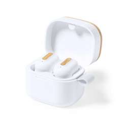 Deras eleganta vita finish pryds av detaljer i bambu. De levereras med ett matchande laddningsetui, praktiskt och stiligt.