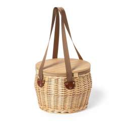 Tillverkad av rotting med en elegant naturlig finish, är den utrustad med en brun axelrem för enkel transport.
