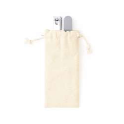 Praktisk manikyrset, perfekt för alltid välskötta händer. Inkluderar en nagelklippare och en fil, allt noggrant förvarat i en elegant påse av oblekt bomull med dragsko. Perfekt för grossistbeställningar, detta set förenar kvalitet och enkelhet.