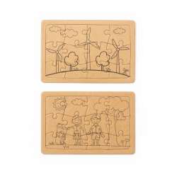 Upptäck detta set med pussel i återvunnen kartong.
