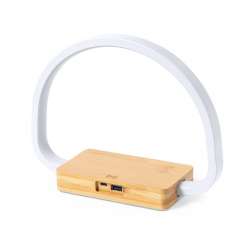 Laddningslampa i design av naturligt bambu. Halkfri bas för optimal stabilitet. Inkluderar en trådlös laddare på 10W.