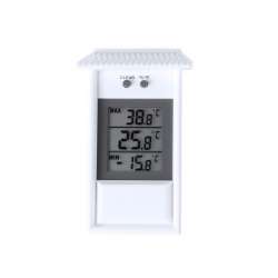 Tydlig LCD-skärm för snabb avläsning av maximala, genomsnittliga och minimala temperaturer. Inuti finns en återställningsknapp och ett alternativ för att välja mellan ºC och ºF.